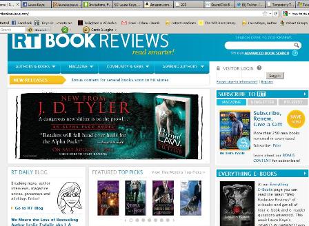 For MJ and Caden it is not love at first sight, it's love at first conversation. Because neither can see each other, their attraction is based on more than just physical appearances. Caden becomes enamored by M.J.'s smart mouth and spunky personality. And MJ immediately recognizes Caden as a sweet, funny and caring man. So when Caden's looks are revealed — tattoos, piercing, scars and all — MJ, and the reader, know that he is heroic in all the ways that matter. Get ready for a unique tale that will have you swooning for this very unusual hero.And, if THAT wasn't exciting enough, HEARTS also got featured on the RT Book Reviews Home Page! I had to screen capture it!