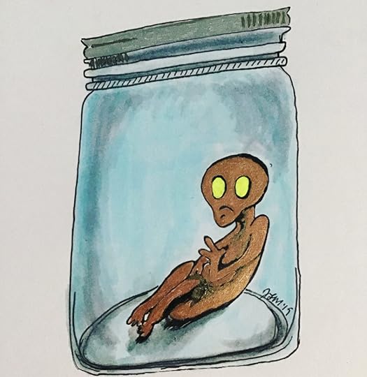 Today’s prompt was catch, so this sad little guy found himself in a jar. Poor thing. I will have to release him soon because no one deserves to live in a jar with tiny holes poked in the top for air.