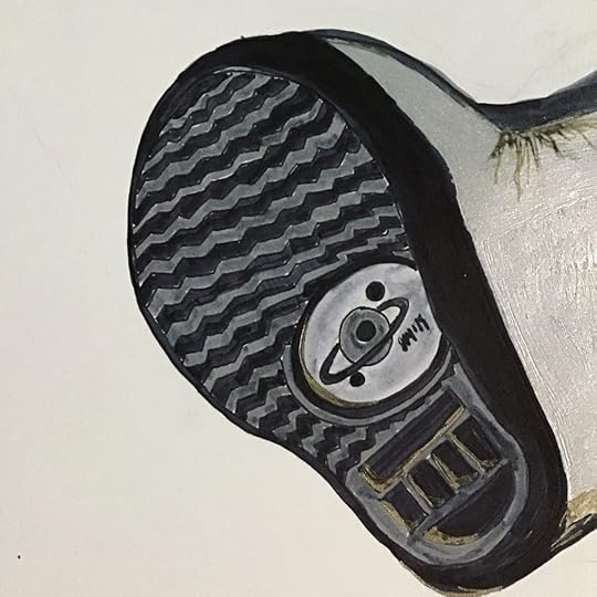 I used a Tombow Mono 03 drawing pen, Uni ball signo gel pens, and Tombow dualbrush pens today on this baby boot tread about to stomp down.