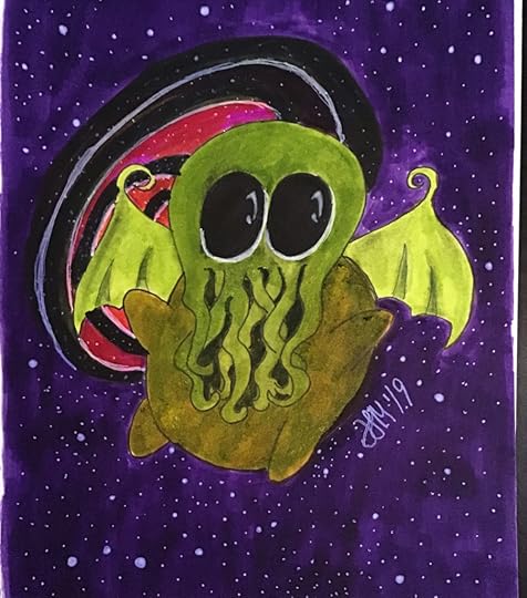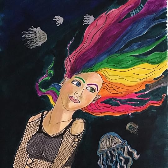 So many things come to mind when I hear the word Misfit, most of them about the band and having forty eyes in my head or digging up bones, and while I looked at that prompt all week, I seriously considered drawing the band. I woke up this morning, however, with other thoughts in mind. I kept thinking about The Endless, most specifically Delirium, who has always embodied so many of the things we all refuse to embrace, discuss, and even acknowledge. In so many ways, she’s one of the greatest Misfits I know, so I drew her in the darkest depths with some jellyfish.