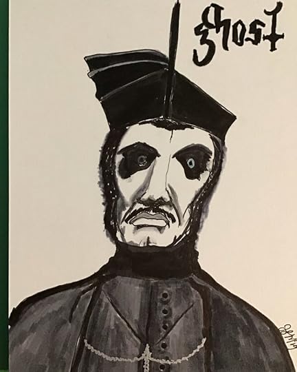I could have done so many things with this. Sheets floating around, possibly in space, but when I first settled on doing Inktober back in September, and I saw the Ghost prompt, my mind immediately went to Ghost… as in the band from Sweden that my progeny has been gloriously obsessed with for years now, and while I wouldn’t call myself obsessed, I do like the music a lot.