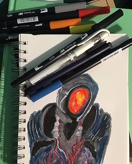 I used a Tombow Mono 01 drawing pen, Uni ball signo gel pens, and Tombow dualbrush pens to create this Mindless robot.