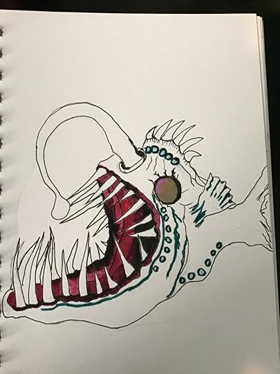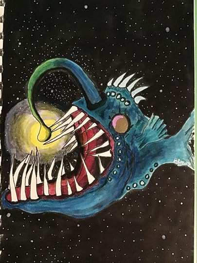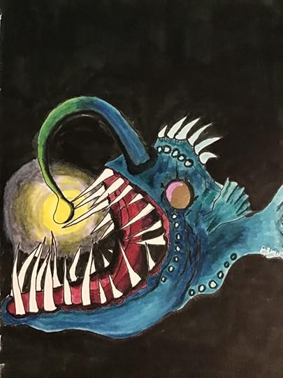 I have always been fascinated by angler fish, intrigued by the idea of them luring their prey into a seemingly cozy space only to gobble them up, so when I saw the prompt for today, I already knew what I wanted to try.