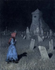But without even looking in their direction, the girl brushed off her skirts and began walking out of the cemetery. She never glanced their way, or even looked back, especially not when the enraged howls of the seven latched onto a bitter wind and clanged the iron gates in their fury.