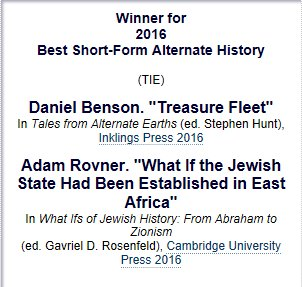 I co-won the Sidewise Award for short fiction along with @adamrov and Ben Winters. I am honored to be in their company.