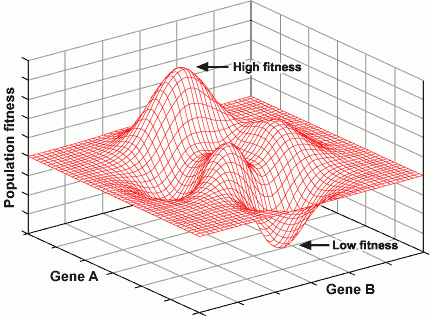 Or maybe since my background is biology, not cold and boring physics, the model of the Adaptive Landscape:
