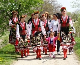 Lazarus’ day (Lazarovden) is the Saturday before Easter, and its festivities consist of girls (Lazarki) dressing up and going around the village to sing at each house, where they are rewarded with the eggs that they will later dye for Easter. Traditional foods on their day include dock-and-onion pie (lopushnik), round bread (pitka), fried fish, and fish and dried mushroom soup (according to Bulgarian Holidays and Traditions by Maria Prodanova).