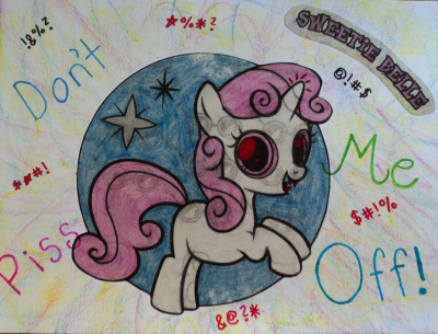 “Evil Sweetie” My Little Pony fan art collage on paper, 9″ x 12″