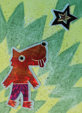Trying out new artistic styles – mixed media collage featuring naive, folk and pop art inspirations