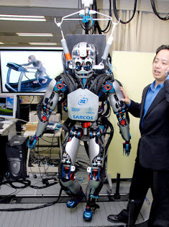 (The pic is of a robot monkey. I found it on Crofty'sBlog. The best part of the picture is the guy standing next to the robot, talking on his cell phone. He's like, "Hey, dude, guess what? I built a robot monkey! No, seriously. Why? Um...'cause...uh...Dude, I built a robot monkey!")