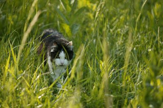 For the last seven months, I've been feeding a feral cat that lives in my neighborhood. It's a young cat, quite skinny, and very stealthy. I named it 'Ninja' because it will slip up, gobble the food from its bowl, and run. It is wary of humans, probably by instinct and also because some misguided neighbors tried to trap it. Apparently, they do not understand the benefits of having cats around.