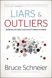 Ina previous post, we looked at the first half of Bruce Schneier's interestingbook. To recap, Liar and Outliers examineshow trust mechanisms work, whether you're ordering products onlinefrom people you've never met, or you're paying a neighborhood kid to mow yourlawn. In order for commerce to function, there must be a certain level oftrust.