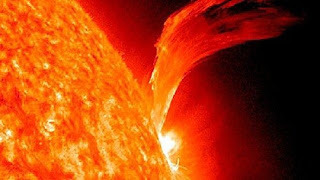 Solar flares are like the Balrog's flaming whip(from Tolkien's Lord of the Rings) grounded in the internal layers of the sun,and they exert some ionic and magnetic influence on our atmosphere, whereas CMEs fling huge hunks ofplasma into space. This plasma can bevery large and hit several planets at the same time. Some scientists estimate the CME event onJanuary 19th may have ripped away 2-5% of Mercury's atmosphere.