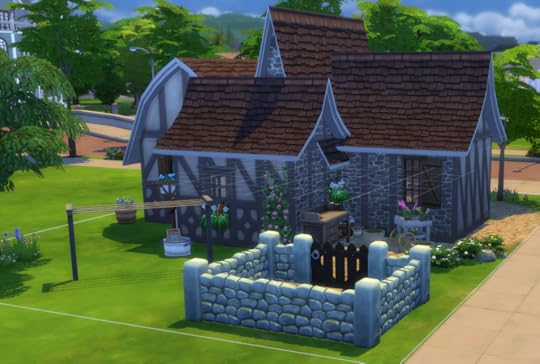 This medieval cottage features a nice front yard, complete with a water well and tree. It’s a perfect house for a witch, for use in fairytales (Snow White maybe?) and for a medieval Sims 4 village.