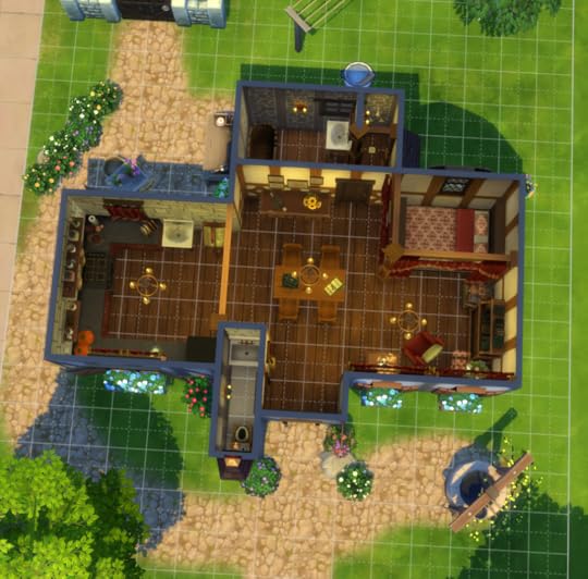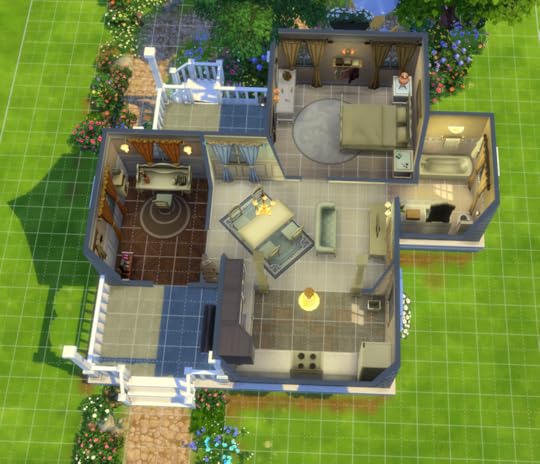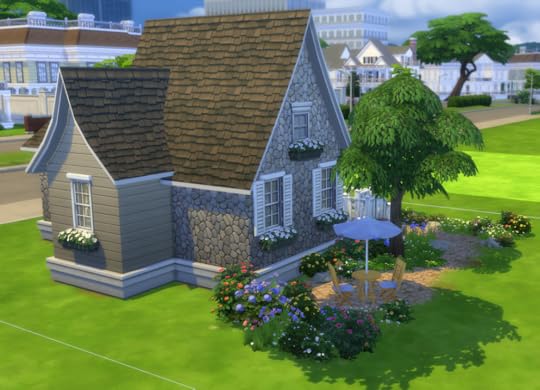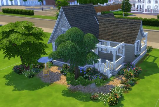 This cottage, nicknamed “Flower Cottage” is a small one-bedroom house that is perfect for a single sim or a couple. This house uses no cc and no content from any of the expansion packs – base game content only!