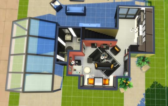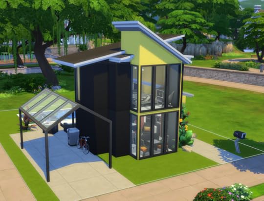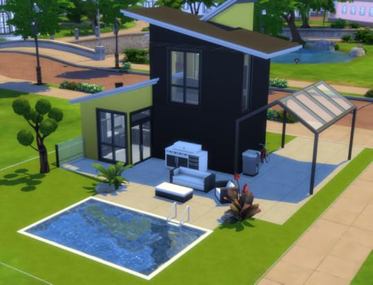 This Modern Tiny House is perfect for a couple or a single Sim. It has room for a car, there’s a swimming pool, and a minimum of flowers that give the garden a modern, contemporary look. The house is tiny but doesn’t feel so small, because it has a lot of windows that let in natural light.