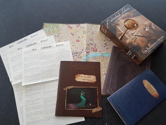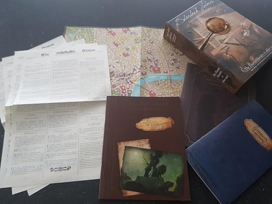 Sherlock Holmes: Consulting Detective is a solo or co-op board game that is ideally played by 1-4 players. It takes place in Victorian London (the 1880s-1890s) and you are trying to solve mysteries alongside Sherlock Holmes and his faithful companion, Dr. Watson. The goal is supposedly to beat Holmes – solve the mystery with fewer clues than he does – but the real fun is if you follow all the clues, and get a picture of the entire mystery, including the parts Holmes doesn’t touch upon.
