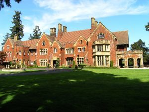 Built by Chester Thorne, one of the founders of the Port of Tacoma, the house is a three-story, gigantic castle that was finally ready in 1911. Several 400-year-old bricks from an original English castle were used to build the manor. The stained glass panels date back to 1300.