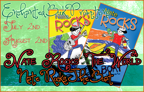 Today I’m hosting the starter day party for the Nate Rocks The World and Nate Rocks The Boat tour. Both these books are hilarious adventures for MG students, and appeal both to boys and girls. I’m halfway through reading the first, and I’m loving it so far!