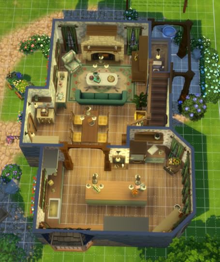 This adorable two-story Medieval-style cottage has it all: stonework, a roof shaped like a tower, a quirky yard with flowers. It could be the ideal home for a grandmother, a young couple trying to enjoy country life, a budding witch, or just about any type of Sim your imagination can conjure up.