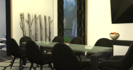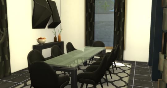Going to the right side of the house, starting from the entry, visitors will first enter into the dining room. The dining area is large enough to seat up to eight Sims, so it’s ideal for when the Sims living in the house have company coming over.