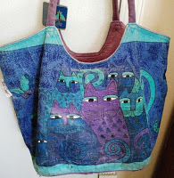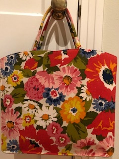 I visited with a friend and she went ga-ga over my bag. She loved the bright floral fabric and the nifty size. Frankly, I was surprised she liked it so much.