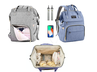 And I went with Mokaloo (Full disclosure: pics are not mine, I took them from Amazon.I still don’t have it in my hands, but I saw pics and I love it. Room for a whole lot of stuff, so many pockets, a zipper in the back-bottom so you can reach that little onesie that always ends up hiding down. Or that one tiny pair of socks crumpled in the left bottom corner under everything else. I think that one will be my favorite feature. And there’s even an USB charging station (not sure what that is yet, but it’s always a plus).