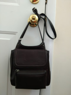 This one suits me. It has compartments so I can organize what goes where. It has an interior pocket that just fits my cell phone, and an exterior pocket that just holds my wallet. There’s a built-in clip where I attached a spare house key. The strap is long enough I can wear the purse cross-body, which helps negate the weight of it. The brown color is good—dark enough to go with anything. Also, and this is critical, it’s just big enough to fit my Kindle when I want to bring it with me. Perfect!