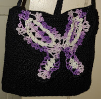The bag is 8x8x2 inches with a long strap. It's made with 3 strands size 3 crochet thread. It's one of my favorite purses ever. The purple is size 10 crochet thread and is some my grandma gave me, so the purse is extra special to me. I love the handiness of it. I want to make so many colors. :)