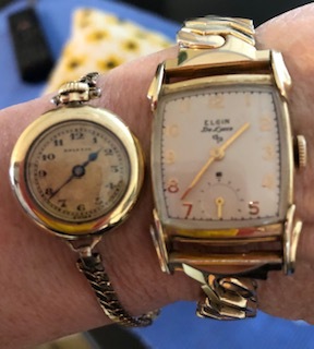 Over the past couple of years, my sisters and I have been sorting my parents’ things. Each of us claimed jewelry, pictures, other odds and ends. From one of Dad’s boxes, I picked up an Elgin watch. I had to laugh because the band was the classic expand-o-matic kind that I remembered being advertised constantly on TV.
