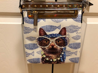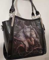 The store owner had a display of her goods, and my handbag was among them. Well…if I’m honest, it’s more a shopping bag, but I don’t leave the house without it. It was love at first sight. The front panel features a wolf. Perfect for a writer of paranormal romance. It’s three dimensional, and the way it moves fascinates my nineteen-month granddaughter.