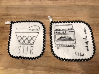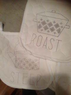 Over the past few years, I have stitched Christmas gifts for friends and my daughter-in-law. I've had a fun time making these things and not duplicating a gift from a prior year. I've made holiday aprons, dishtowels, and more. Handsome had a surgery last February and knowing I would have down time to stitch (between writing sprints), I needed a new project. I didn't want a big bulky project. And then voila!