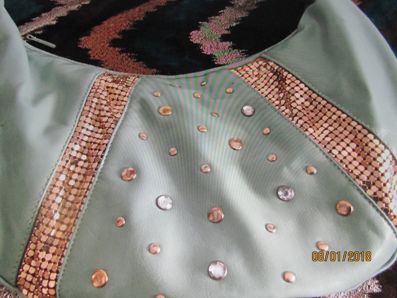 It’s actually smaller than it looks, so it doesn’t hold much. And I’ll confess, now the dress the bag went with is long gone, the color makes it tough to find clothes that go well with it. But isn’t it pretty? And don’t you think that’s worth the challenge? ;)