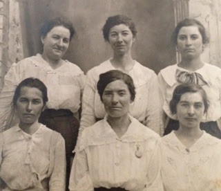One picture was of my grandmother with her five sisters. They all had on white shirts with a pin at the throat. Their hair in topknots. What I love about the picture is their names are written on the back. All of their names began with "L," Lannie, Letha, Lottie, Lela, Lou, and Lillie--my grandmother who went by a shortened version of her middle name, Josie. My mom's middle is Lorene. I like how my mom gave my sisters and I "L" middle names: Lea, Louise, Lynn, Lynette.