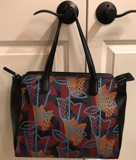 I hadn't carried it much because it is a little large and heavy (all that leather!). Great for sticking extra things like water, needlepoint, or a book. I stuck it back on a shelf until a couple of weeks ago. The color appealed to me in a fall way; decision? Carry.