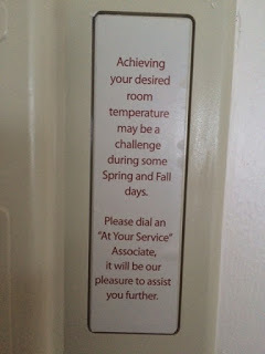 Housekeeping: The Housekeeping staff were on the floor, bright and early at 8 am, shouting down the hall to each other, music BLARING (not in earphones), and slamming carts into walls and doors. About a quarter of the rooms had PRIVACY signs on them. My guess is those people wanted to SLEEP. With the cacophony in the hallway, I doubt they could. I know I tried, but the noise woke me up.The area: Downtown Chicago, IL, a great WINDY city. We lived there for over a decade. I recommend visiting only during summer and early fall, as the weather is either HOT or COLD, just like the hotel thermostat.