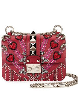This bag is a Lock Mini Love Blade Shoulder Bag in Red by Valentino. I came across the bag on Pinterest doing a search for my character Emma from The Killing Chronicle Series. Emma loves high end fashion. She is a former model turned local witch and crime solver. I fell in love with this bag on first site. In some ways I’m like a faerie or for those of you who have ever paper and dice role played, a kender. If it’s shiny. I need to possess it. This purse has lots of fun sparkle. It’s small. Which I love. I don’t carry purses often. When I do it’s either to put lip stick and a compact in or everything.