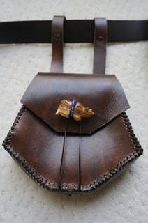 My worst dilemma was finding a closure when I ran out of time before my event. I looked around the house...and found one of my stone Zuni carvings had a pinched belly, perfect for looping several rounds of waxed string with beads and a piece of leather lacing.