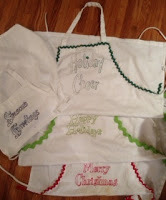 Every year, I make something for my daughter in law and friends for Christmas. This year, I embroidered holiday aprons.