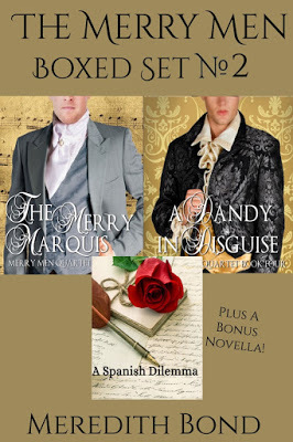 A Spanish Dilemma Robert Seton is determined to do something for the war effort, despite the fact that his father won’t buy him a commission in the army. With enough pressure, pleading and persuasion, he convinces the Foreign Secretary to give him an assignment. It could have been an empty job observing the talks in Basel, Switzerland between France and Spain, but in Robert’s hands he will use it to make a difference—if only his mind would stop straying to the Spanish ambassador’s beautiful daughter. Isabella Guzman is determined to avenge her brother’s brutal murder at the hands of the French army. She’s accompanied her father to Basel to ensure that he stay strong and that the French get out of Spain as quickly as possible, taking as little as possible. Her efforts, happily, are being helped by the new representative sent by the English government. What’s disturbing is how handsome and charming he is—she could easily get caught in his spell. Can two people from such different backgrounds ever have a chance together when there is so much to keep them apart? The Merry Marquis Through the beauty of music, brings love and the will to live a life lost. It is only at the pianoforte with beautiful music flowing from her fingertips that Teresa Seton is happy. New to English society, she feels awkward and unsure of herself. Only the attentions of her handsome neighbor can convince her that she is where she belongs—a stolen kiss proves that he means what he says. But the kiss is witnessed and the pair are forced to marry for propriety’s sake. Once known as the “Merry Marquis”, Richard, the Marquis of Merrick, now lives the life of a recluse. Finding a beautiful stranger at his pianoforte strikes a chord within him, bringing back feelings he thought were lost with the passing of his wife. He is mesmerized by Teresa and her beautiful music, but can he convince her, and himself, that he can live and love again? A Dandy in Disguise Can he lose the disguise... and find himself? St. John Fotheringay-Phipps has nearly forgotten who he truly is. As the dashing, amusing dandy known to all in society as Fungy, he has hidden himself behind a mask of merriment. But he is reminded that there are pleasures beyond society -- when he finds himself feeling responsible for the innocently lovely and fiercely intellectual Rose, the daughter of a famed archaeologist, and her charming, if socially inept, family. Rose Grace knows that she cannot gamble with her future. She has suddenly been thrust into the role of mother to her two young sisters, companion to her brilliant, distracted father --and family savior. She needs to do the right thing -- to forget her own desires and quickly find a wealthy husband before the creditors come beating at their door. Then why is she distracted by the foppishly handsome Fungy, who seems so very irresponsible and pleasure-loving? Surely he's the last person whose advice she should follow!