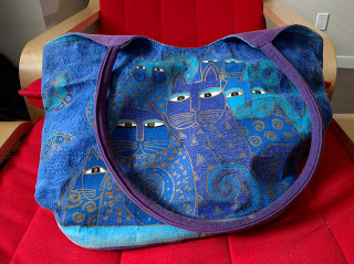 and a bookwith author Jo-Ann CarsonA purse to fit my life into...My cat purse is fifteen years old and even though its vibrant blues have faded, I love it as much as the first time I laid eyes on it. The design by Laurel Burch appeals to the cat and art lover inside me. The one who wants out.