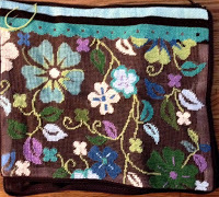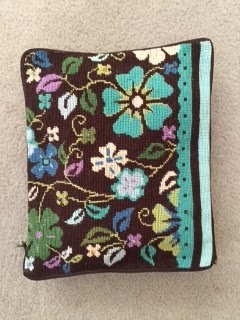 Sometimes, needlepoint projects can take me a while. Last summer, I began a Stitch n Zip iPad cover and took it with me on my vacation as it was small enough to fit in my handbag. When I returned, my sister said she thought it cute and said when I was finished it was hers for her birthday.