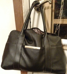 This is one of my favorite handbags. It’s small, so I don’t use it often. I’m one of those women who carry everything – not only my own stuff, but emergency bandages and tissues and pens for everyone else, too. (For those of you who remember Let’s Make a Deal, I’m pretty sure I could’ve been a big winner!)