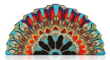 I am in love with this Judith Leiber Sodalite, Aventurine & Amethyst Fan Clutch Bag. This clutch is made of sodalite, aventurine and amethyst. The interior is lambskin leather lining. Crafted in Italy, Judith Leiber is an American Luxury brand synonymous with elegance, style and sophistication. Nearly every first lady since 1953 has carried custom-made Judith Leiber bags to the U.S. Presidential Inauguration ceremonies. It's truly an iconic American brand. That is one of the reasons I adore this bag because of the brand’s historical significance with the presidential inauguration's. and because it's so colorful and it reminds me of a peacock! I like bright colors and bling.