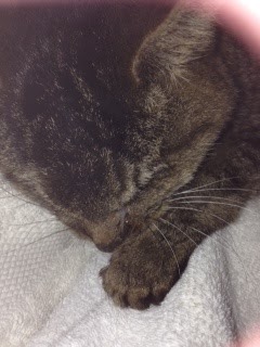 Scoo was a good kitty. Shy. Soft. Had a good fussy face. Knew what an alarm clock was and helped wake us up. Screamed at me when I'd returned from my travels. She nodded off by my monitor while I worked.