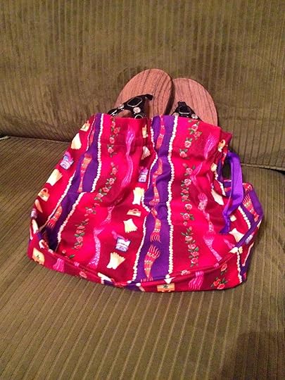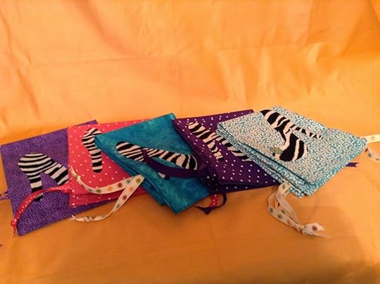 Clapping hands as one of my very favorite short fiction--and now, long fiction--writers, Marilyn Baxter, is with me today and is showing off her craft: shoe bags!