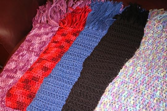 I started out as a knitter, learning as a kid in a Brownie troop, but knitting is harder. I taught myself to crochet and seldom do any knitting now. I make scarves, shawls, and afghans. Crocheting becomes meditative and relaxing. It’s something to do watching TV, football especially.