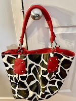 I saw this handbag online, and I loved the giraffe print. I needed a fun, summer bag, so I ordered it. I like it because it’s roomy, and it has red trim. I just wish that it had compartments. Everything seems to fall to the bottom, and I have to rummage and feel around if I want something.