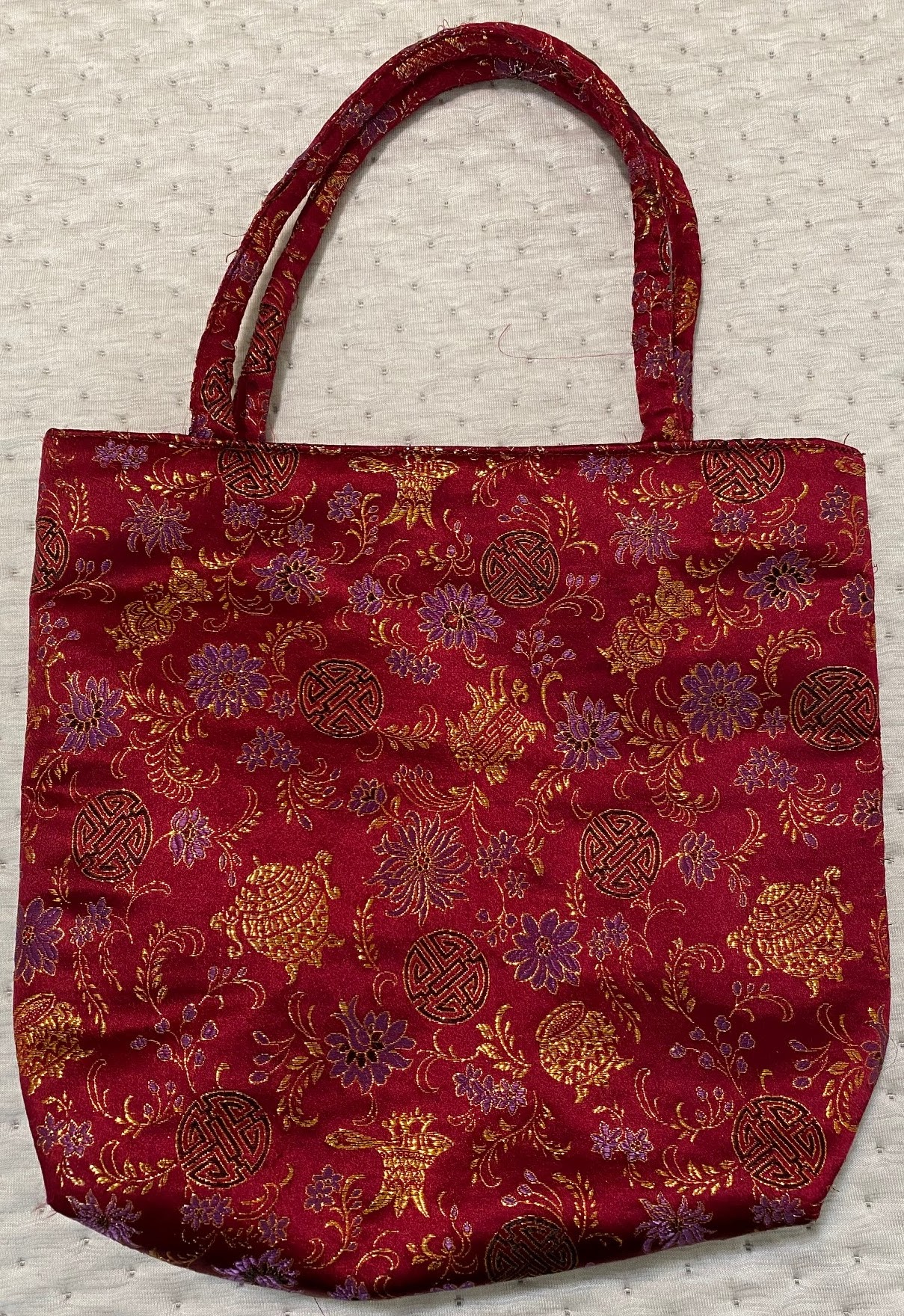 My daughter bought me this handbag in San Francisco’s Chinatown. It’s not expensive, but I love the bright colors and the way it reminds me of our many visits to that funky neighborhood. We always stop for lunch in a fancy Chinese restaurant—sorry, I can’t find the name on Google Maps, but the place has elaborate décor, enormous chandeliers, and private rooms with carved wooden doors for privacy—the perfect setting for a spy movie or gangster flick. After that, we browse the tourist shops.