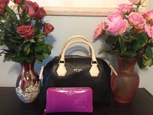 Hubby took me shopping for our 24th wedding anniversary and told me to pick whatever I wanted. The bag manager at Von Maur pulled out a handful of beautiful bags and wallets from all kinds of different designers. My eyes went past bright pinks, ocean blues, and blah neutrals right to a warm, sophisticated chocolate brown Kate Spade. "Smoke stack" the Von Maur manager said. "Ooh," I said, rubbing my hand over the soft leather and loving the tiny spade emblem above the Kate Spade imprint. http://www.katespade.com/catherine-street-pippa/PXRU4010,default,pd.html "Named after Piper Middleton," she added, her eyes dancing with the same light I knew was in mine. "Love," I murmured, thinking of how I might jet off to London, new bag in hand, and accidently run into Piper. She would see my bag and hug with me with glee, then invite me out clubbing... Of course, I'd need a compact wristlet/wallet to take clubbing, so I picked out a pretty zinnia pink Mikas Pond Lacey wallet to go with it. Bright and cheerful and easy to find when it was inside my Catherine Street Pippa. http://www.katespade.com/mikas-pond-lacey/PWRU2076,en_US,pd.html?dwvar_PWRU2076_color=658&cgid=ks-accessories-wallets#start=25&cgid=ks-accessories-wallets Wow, Misty, you really scored big on your anniversary. I bet lots of #HandbagMonday followers are green-eyed envious. I know I am Thank you for being on #HandbagMonday today!